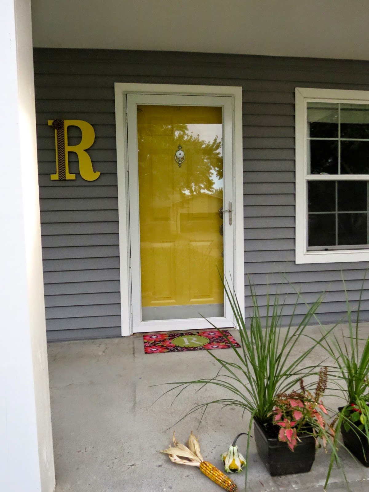 The last thing that needed done was painting the front door. I knew when we picked gray siding that I wanted a yellow door.