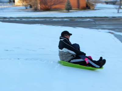 After naps, we went sledding. At first we were on the hill at the neighbor's house.