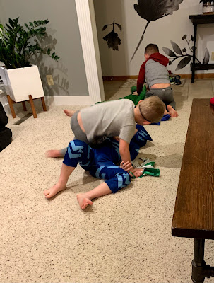 After a really big snow, our trampoline was looking quite saggy. Zach and I decided we better clear it off. He got up there with shorts on and started throwing snow out.
