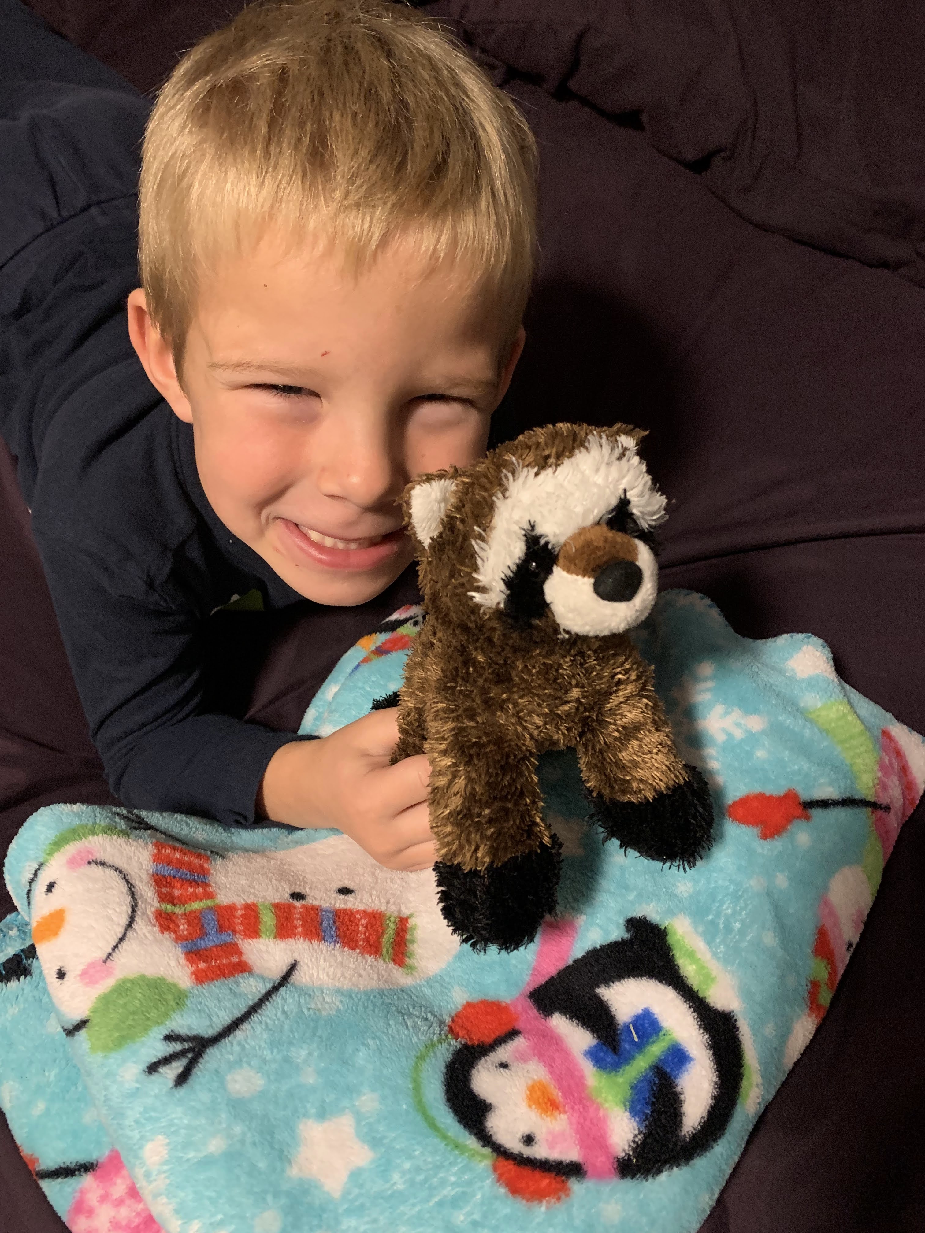 The boys got to take blankets and stuffed animals to school. They were so excited!