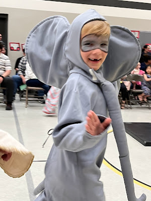 Watson Elementary does a kindergarten circus. It is an adorable program that they have been doing since the 1970s. Pierce was an elephant and Graham was a strong man.
