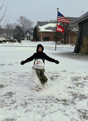 One evening Pierce went out to build a snowman. Graham was not in the mood, which is rare. Pierce built it all by himself while it snowed on him. He was so proud!